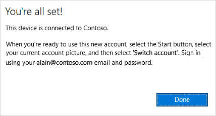 - On the You're all set screen, click Done.